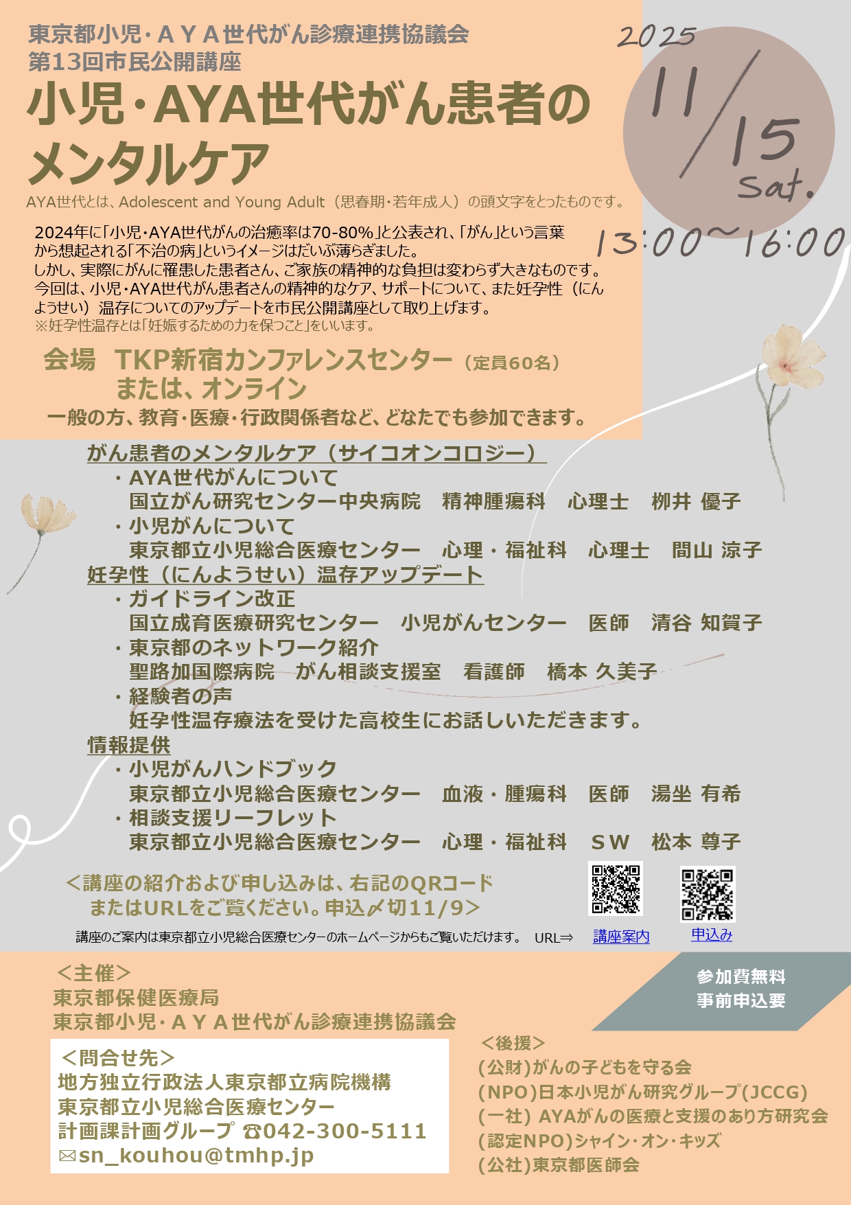東京都小児・AYA世代がん診療連携協議会主催の、