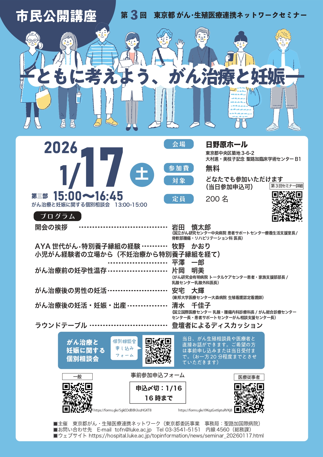 1月17日市民公開講座「ともに考えよう、がん治療と妊娠」のお知らせ